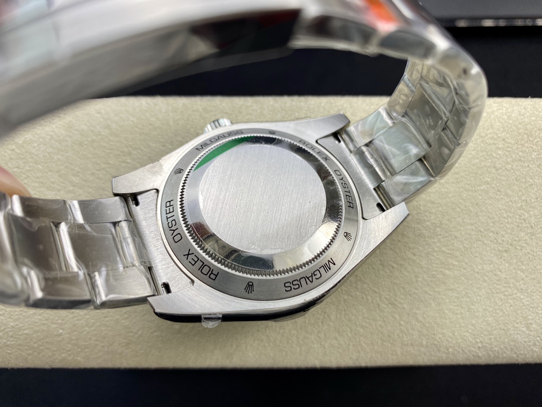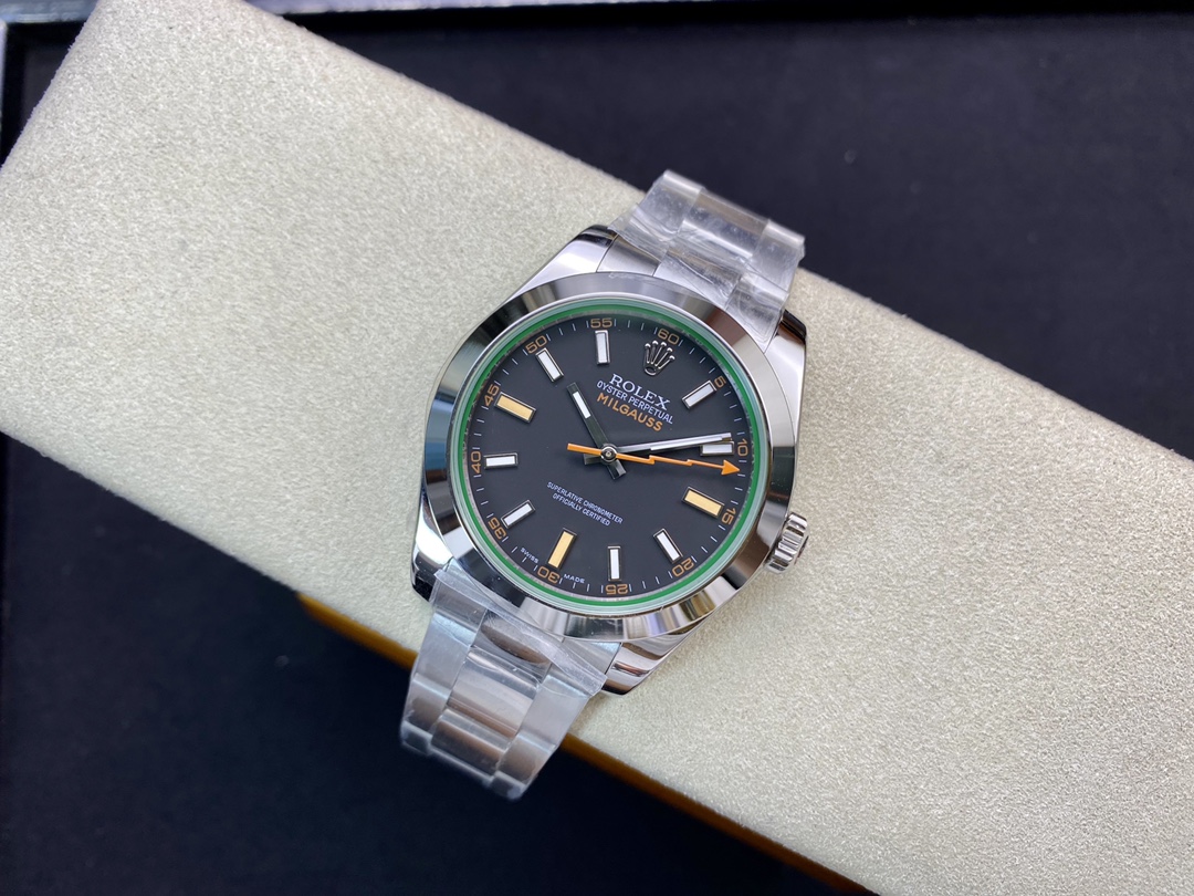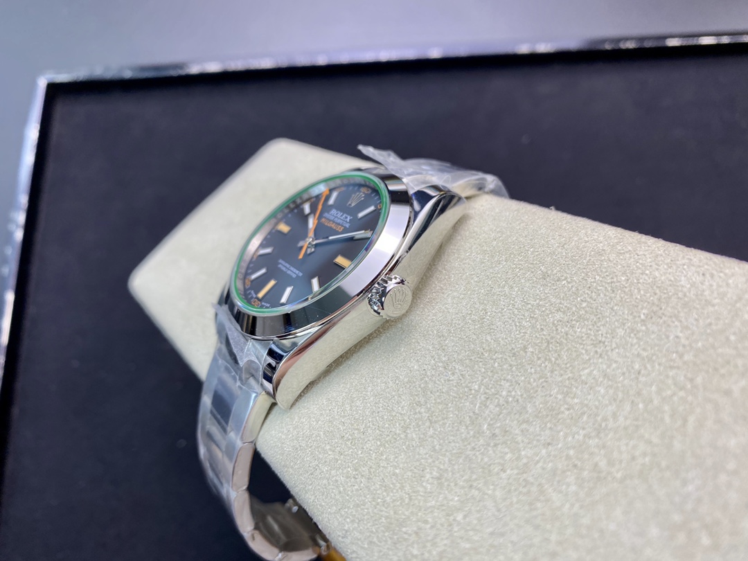 The Lightning Series Green Crystal, official model: 116400GV-72400. Visually, the dial is truly a standout feature. The Oyster Perpetual Milgauss watch boasts a 40mm diameter and houses the 2836 movement.The crystal is crafted from scratch-resistant green sapphire. Through this green crystal, one can observe the captivating green dial, featuring a large crown at the 12 o’clock position. The glass exhibits a dynamic color shift under varying light conditions.