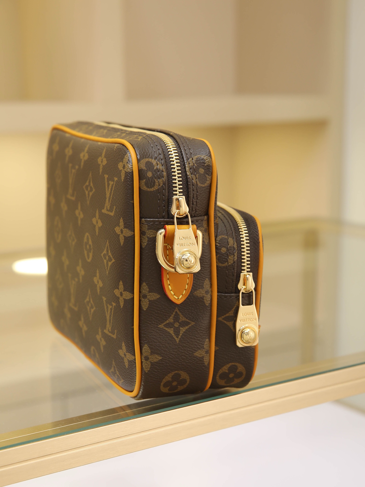The Nil handbag is a compact fashion piece from the Monogram Archive collection, crafted from Monogram coated canvas with cowhide leather trim. It blends vintage details with modern elegance, featuring reinforced corners and Pharrell Williams’ newly introduced pearl zipper. The removable handle and shoulder strap offer versatile carrying options.