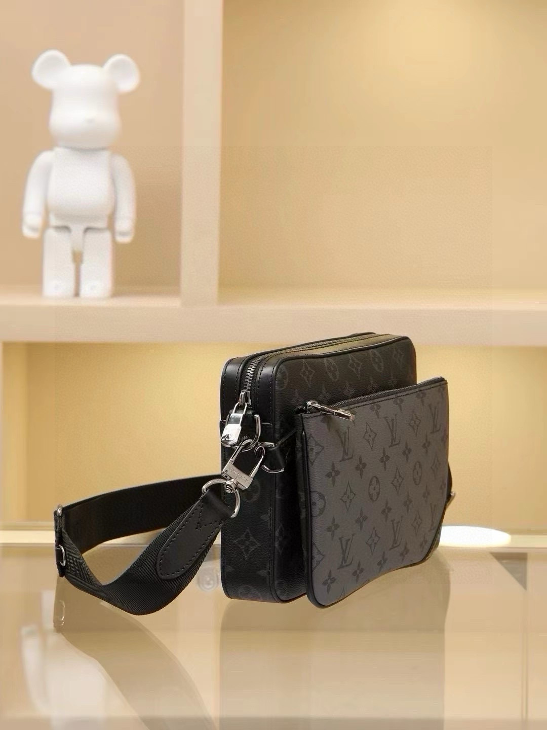Be the first to review “The Trio Messenger Bag in solid metal hardware is crafted from Monogram Eclipse canvas and Monogram Eclipse Reverse canvas. The iconic monochromatic gray pattern accentuates the lines of this versatile patchwork design. Beyond its traditional crossbody functionality, it includes a detachable zippered pouch and a coin purse attached to the strap. Dimensions: 25.0 x 18.5 x 7.0 cm” Cancel reply