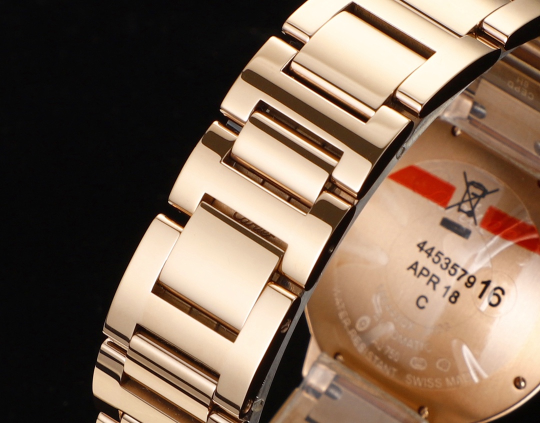 The V6 Cartier Ballon Bleu watch series features two movement options: the Seiko NH05 and the Swiss 2671. The 2022 collection introduces 33mm and 36mm models, both standard-equipped with alligator leather straps or rose gold bracelets. The 33mm model measures 10.06mm in thickness.The 33mm model measures 10.06mm thick, while the 36mm version is 12.05mm thick. The dial is crafted from 316L stainless steel with a sapphire crystal double-curved glass. The hands feature a blued finish, and each dial is meticulously CNC-engraved. The crown incorporates genuine gemstones, with sapphires that turn red under UV light. Every detail is flawless—this timepiece is truly one of a kind, representing the pinnacle of watchmaking excellence.