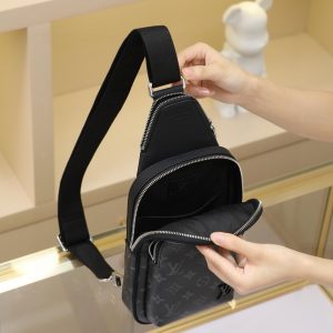 This Avenue small shoulder bag features Monogram Eclipse coated canvas, exploring the trend of crossbody styling through its refined silhouette. The main compartment’s interior pocket ensures secure storage, while the zippered exterior pocket offers easy access to everyday essentials. A triangular zippered pocket is positioned where the shoulder strap meets the bag. 33x16x5.7cm