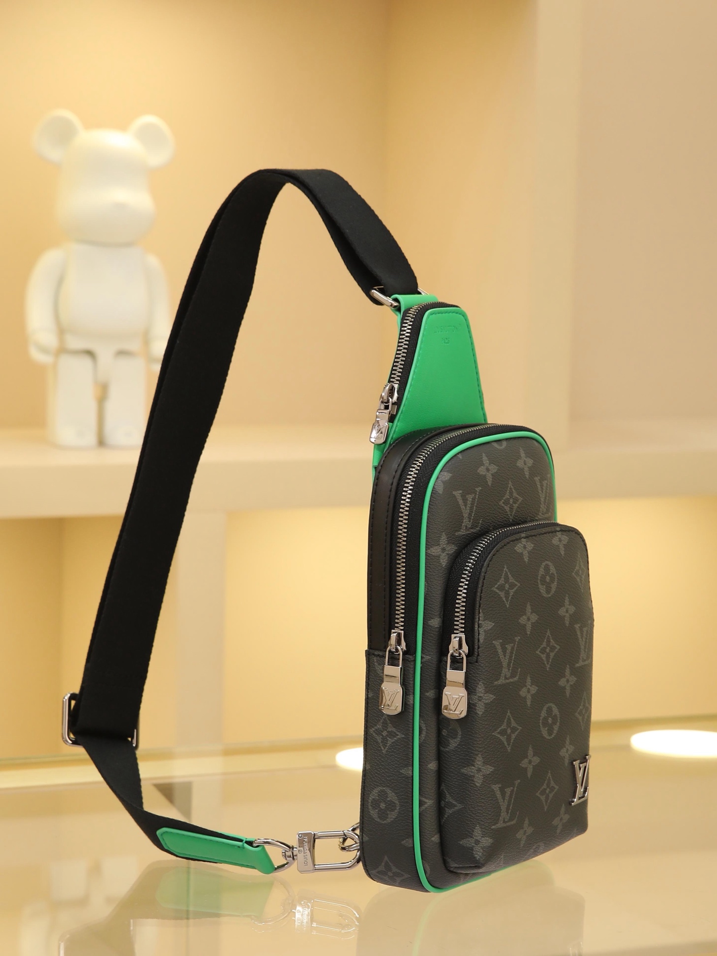 Be the first to review “This Avenue small shoulder bag features Monogram Eclipse coated canvas, exploring the trend of crossbody styling through its refined silhouette. The main compartment’s interior pocket ensures secure storage, while the zippered exterior pocket offers easy access to everyday essentials. A triangular zippered pocket is positioned where the shoulder strap meets the bag. 33x16x5.7cm” Cancel reply