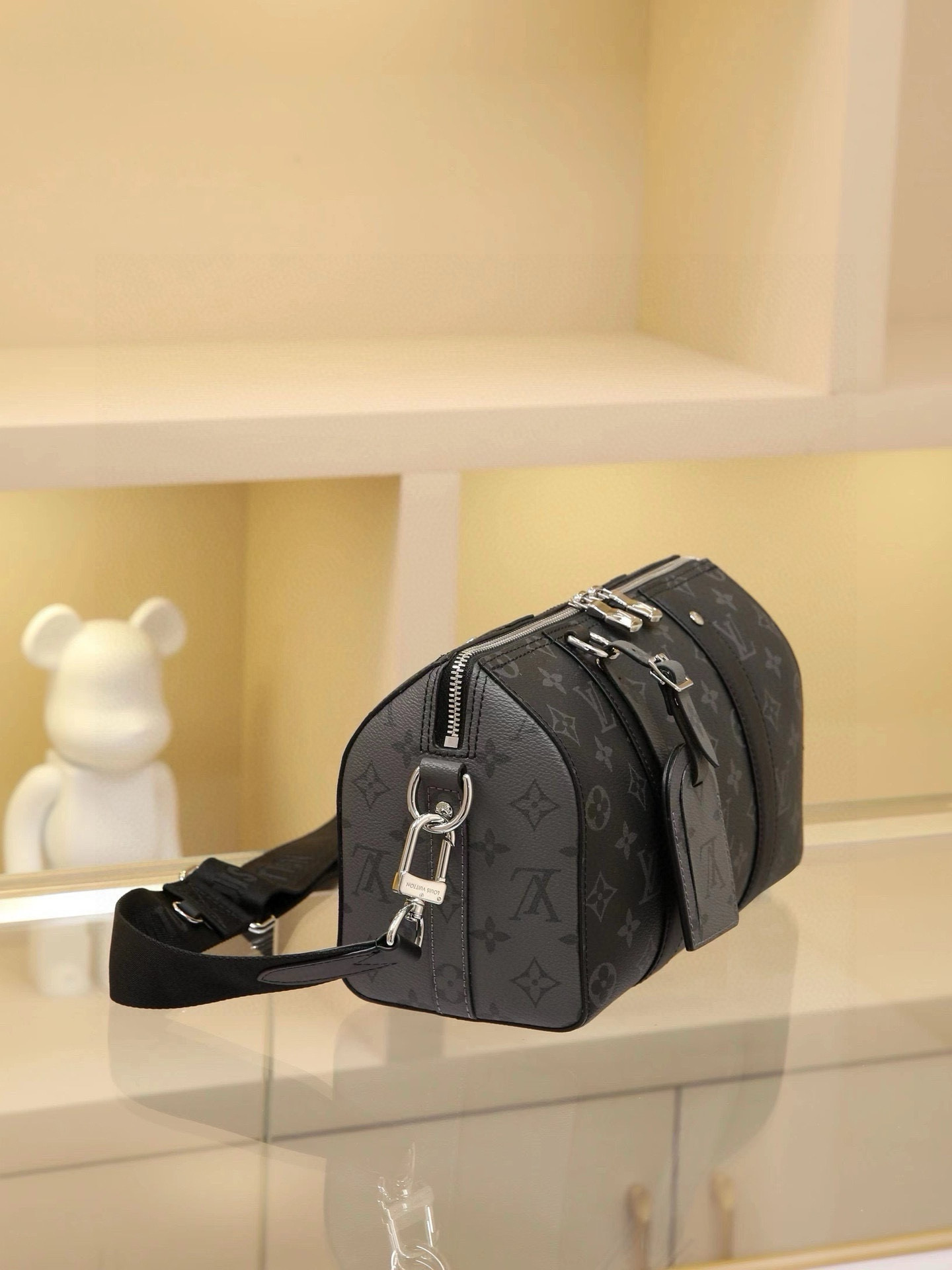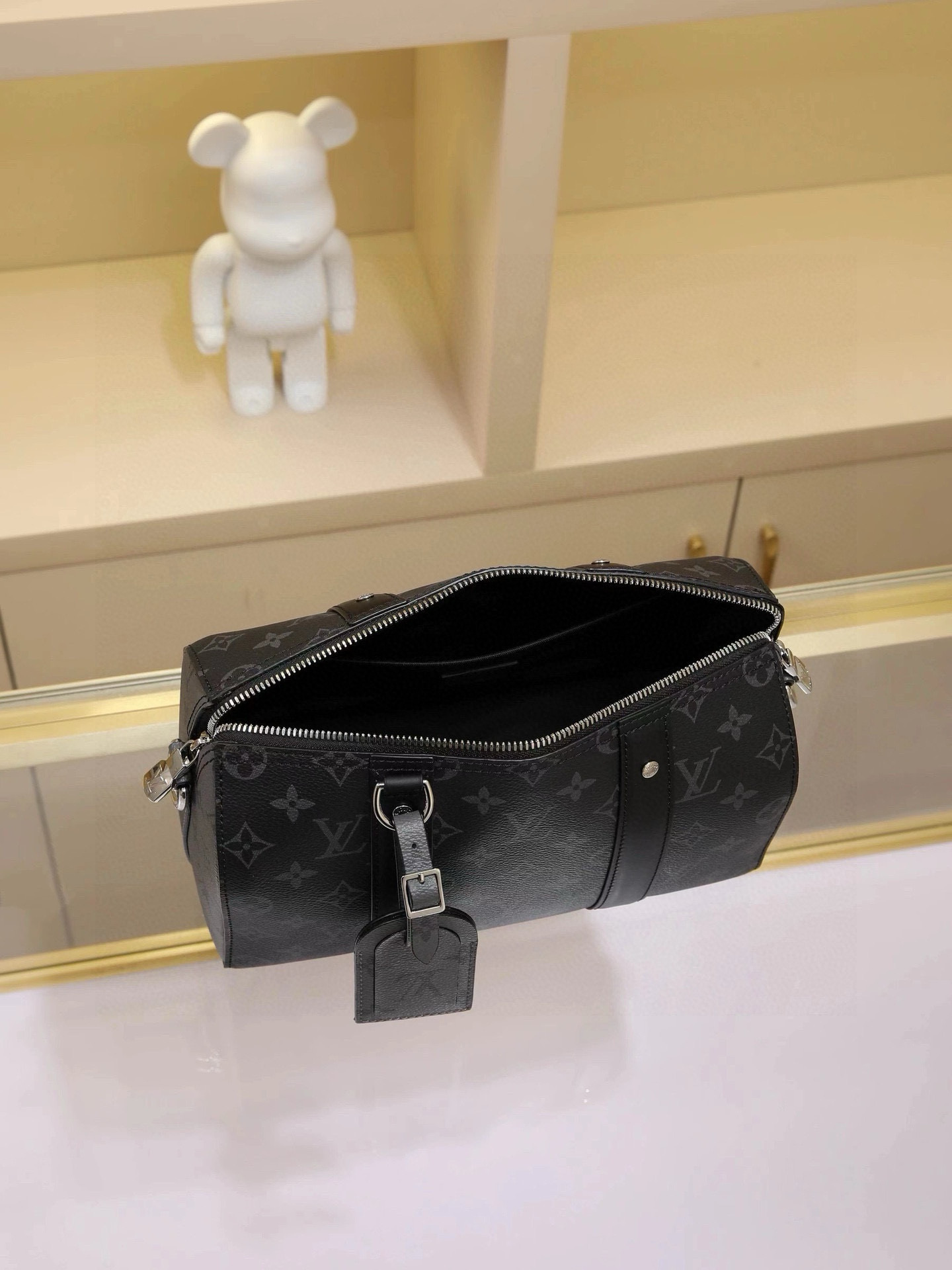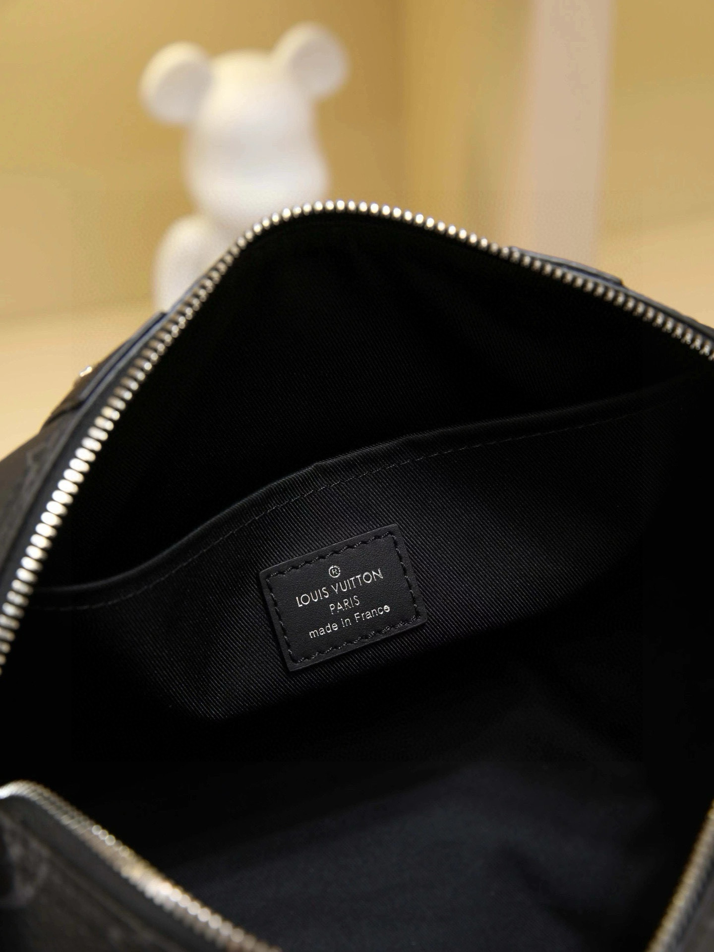 This Keepall XS bag is perfect for women to carry, featuring a unisex design. The black Monogram pattern looks incredibly stylish. Most importantly, the shoulder strap is adjustable. It features Monogram coated canvas with leather trim, a fabric lining, a zipper closure, and a removable, adjustable shoulder strap!! Dimensions: 27 x 17 x 13 cm.