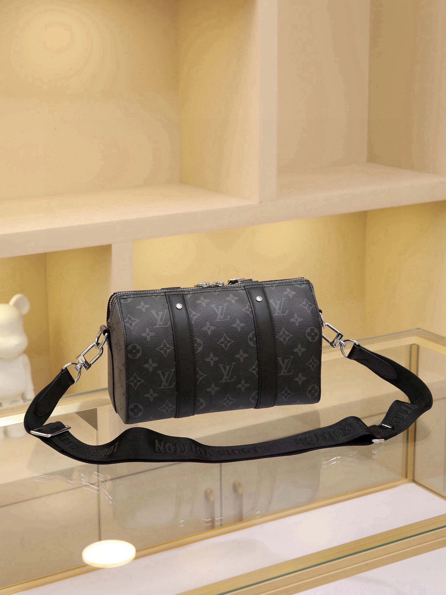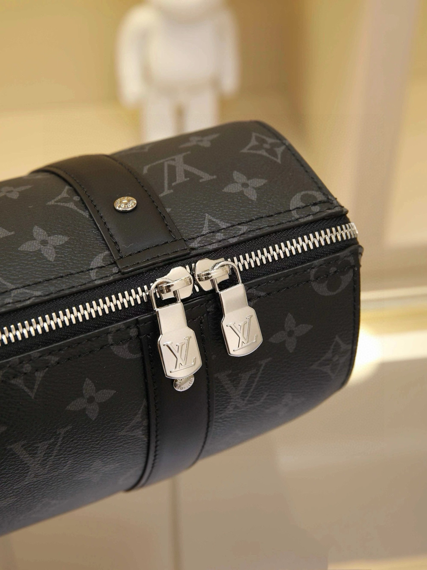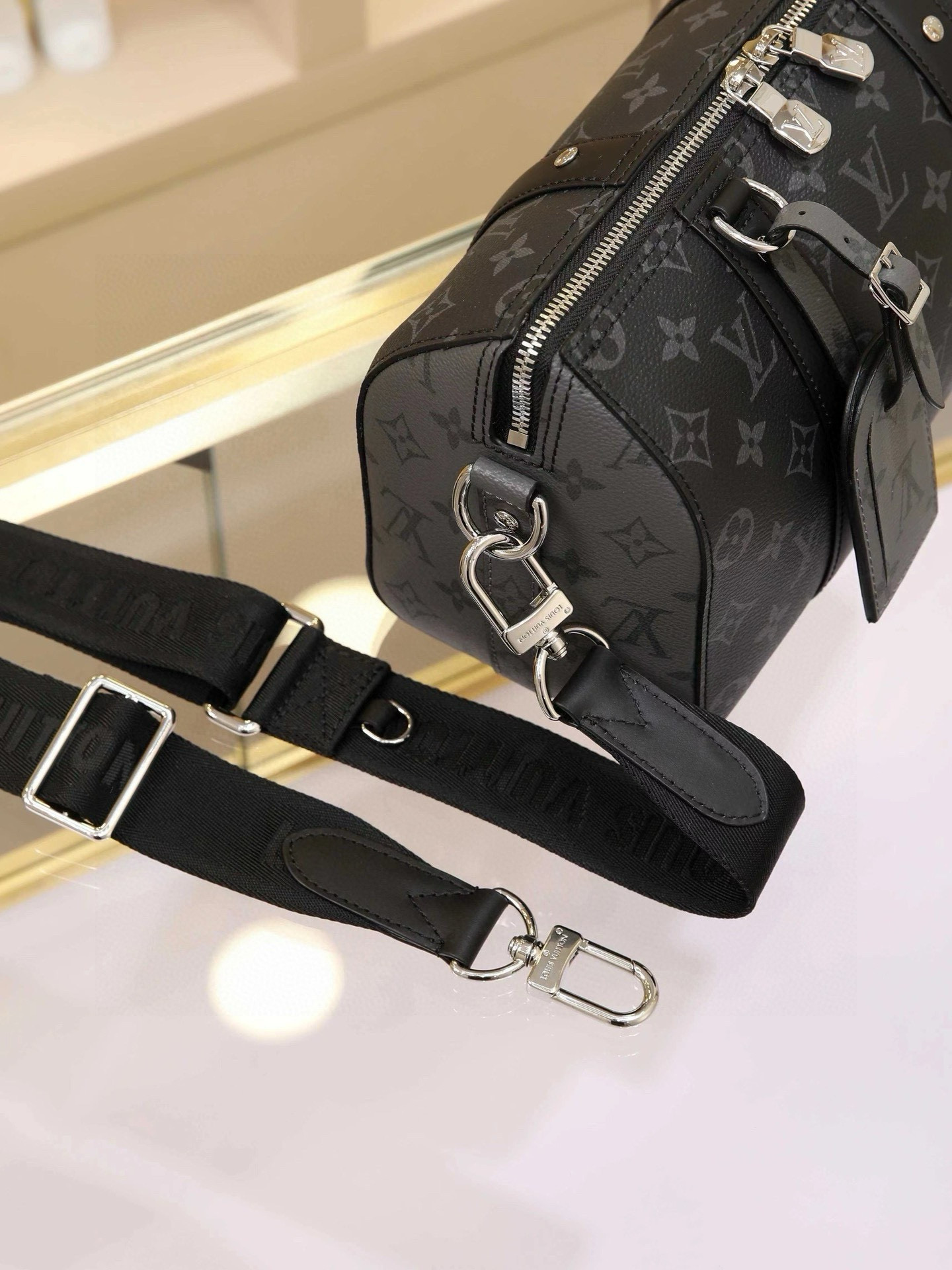 This Keepall XS bag is perfect for women to carry, featuring a unisex design. The black Monogram pattern looks incredibly stylish. Most importantly, the shoulder strap is adjustable. It features Monogram coated canvas with leather trim, a fabric lining, a zipper closure, and a removable, adjustable shoulder strap!! Dimensions: 27 x 17 x 13 cm.
