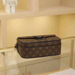 This S Lock messenger bag is crafted from Monogram Macassar canvas, featuring a new magnetic clasp inspired by Georges Vuitton’s 1886 trunk lock design. A special finishing process lends this magnetic metal clasp a striking modern flair. It also includes a spacious zippered compartment, trunk-style leather handles, and an LV monogram shoulder strap—stylish, versatile, and easy to use.Monogram Macassar coated canvas with Epi leather trim and matte black metal hardware lining – Leather handles with V-stitching and embossed logo – S-shaped magnetic clasp – Large front pocket – Large zippered compartment – Interior slip pocket – Detachable, adjustable shoulder strap!! Dimensions: 22x18x8CM
