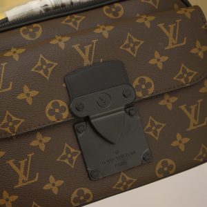 This S Lock messenger bag is crafted from Monogram Macassar canvas, featuring a new lock inspired by Georges Vuitton’s 1886 trunk lock design. A special finishing process lends this magnetic metal lock a striking, contemporary look. It also includes a spacious zippered compartment, trunk-style leather handles, and an LV-branded shoulder strap—stylish, versatile, and easy to use.Monogram Macassar coated canvas with Epi leather trim and matte black metal hardware lining – Leather handles with V-stitching and embossed logo – S-shaped magnetic clasp – Large front pocket – Large zippered compartment – Interior pocket – Detachable, adjustable shoulder strap!! Dimensions: 22x18x8CM
