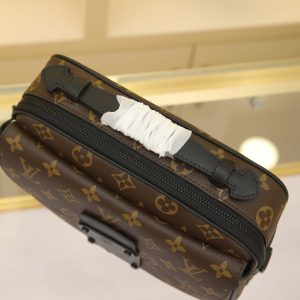 This S Lock messenger bag is crafted from Monogram Macassar canvas, featuring a new lock inspired by Georges Vuitton’s 1886 trunk lock design. A special finishing process lends this magnetic metal lock a striking, modern look. It also includes a spacious zippered compartment, trunk-style leather handles, and an LV monogram shoulder strap—stylish, versatile, and easy to use.Monogram Macassar coated canvas with Epi leather trim and matte black metal hardware lining – Leather handles with V-stitching and embossed logo – S-shaped magnetic clasp – Large front pocket – Large zippered compartment – Interior slip pocket – Detachable, adjustable shoulder strap!! Dimensions: 22x18x8CM