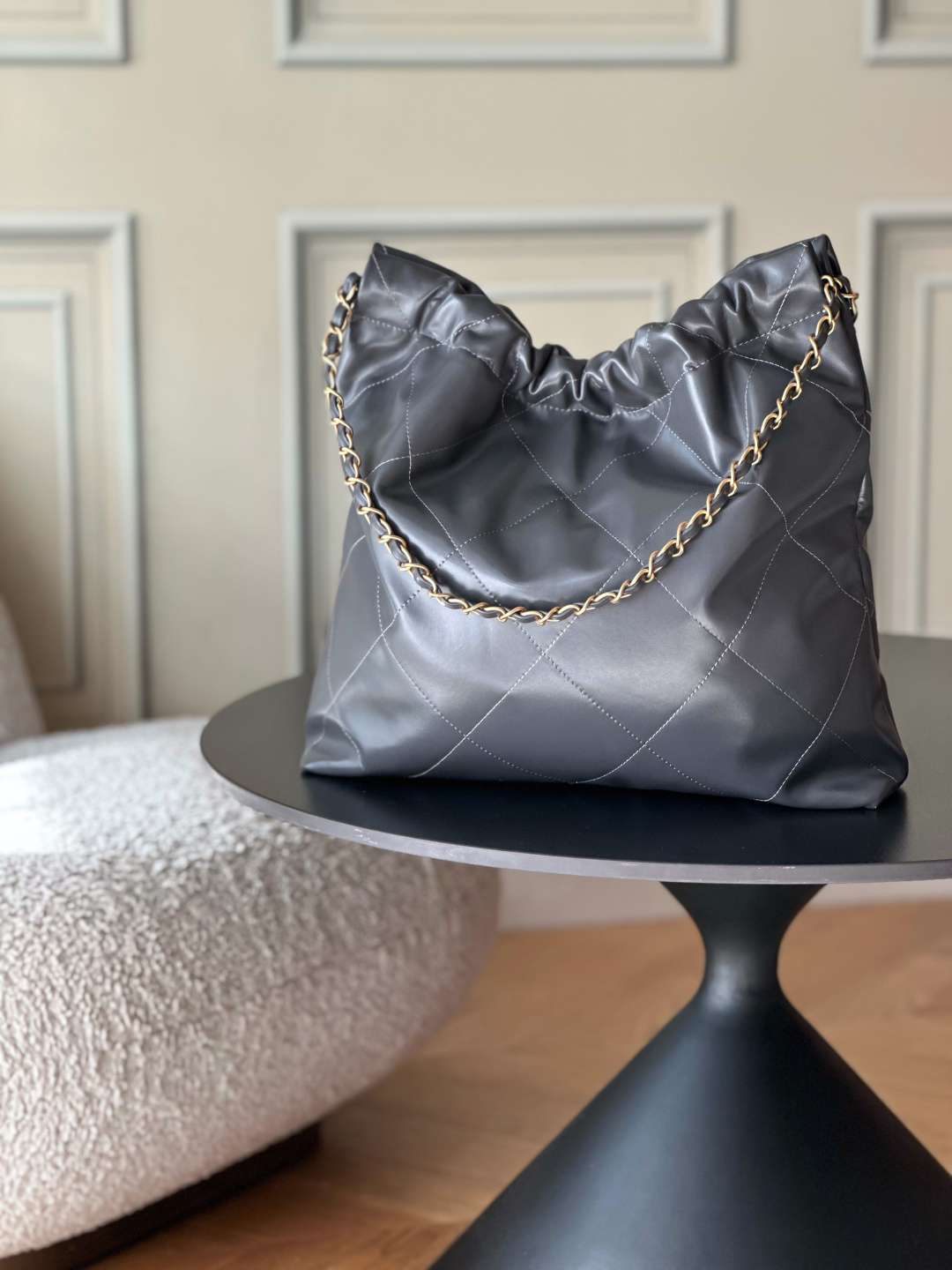 AS3261# Chanel 2022 New Arrival Oiled Leather Calfskin Drawstring Tote