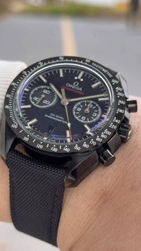TVS Pioneer Edition: Omega Speedmaster Dark Side of the Moon Watch 311.92.44.51.01.0054 25mm Co-Axial Chronograph, in-house developed 9300 movement 3 o’clock subdials display 【12-hour】 and 【30-minute】 cumulative timekeeping All functions and aesthetics meticulously crafted to replicate the original 【1-1】 model.Movement: 9300 Dual-T Black Balance Wheel, Automatic Co-Axial Master Chronometer Chronograph Movement. Rhodium-plated movement with distinctive Arabic-style Geneva waves. Bezel: Brushed ceramic. Dial: Matte dark gray ceramic dial. Case: Brushed black. Strap: Black nylon fabric strap. Crystal: Double-domed sapphire crystal. Scratch-resistant. Functions: Date display, Chronograph.