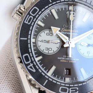 Tvs Production, Omega Seamaster Cosmic 600M Men’s New Chronograph, Model 215.32.46.51.01.004 (45.5mm) Authentic one-to-one replica molded from the original, matching all functions and appearance of the genuine piece (3-position chronograph minute hand, dual-zero reset for both hands, 6-position chronograph,9 o’clock small seconds). Details: 1. Stainless steel case, gray dial, luminous hour markers and hands, dual sub-dials chronograph with date display, gray ceramic unidirectional rotating chronograph bezel, paired with gray sports bracelet and folding clasp. 2. Powered by the new 9900 automatic chronograph movement, featuring Omega’s unique black balance wheel with Dual T shock resistance.Synchronized with the original, featuring an ultra-long 72-hour power reserve. All chronograph functions replicate the original’s performance. 3: The steel bracelet utilizes 316L stainless steel with CNC polishing. Complex craftsmanship, meticulously crafted. Dedicated to watch enthusiasts everywhere. A perfect replica: A classic forged by time ~ A tribute to the ocean. {TVS Pioneer Creation – A Masterpiece}