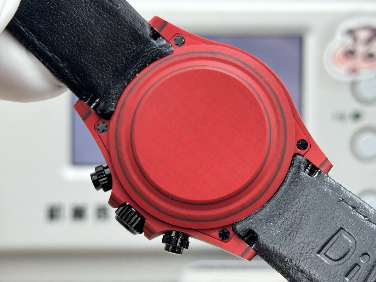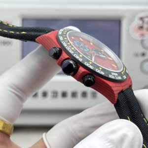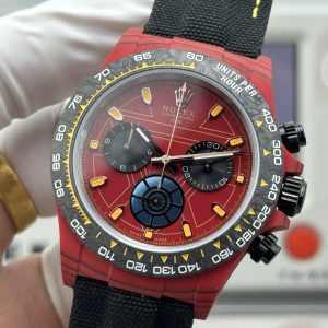 TW Factory ROLEX Cosmograph Daytona Carbon Fiber Custom Edition. This timepiece offers lightweight comfort while maintaining a robust exterior. Each watch features a uniquely patterned carbon fiber material. 【Case】 Dimensions of 40×12.4mm perfectly match the original. TW Factory masterfully crafts the distinctive character of carbon fiber Rolex watches.Exclusively in the market, the entire case, bezel, and caseback are crafted from high-composite carbon fiber and ultra-bright luminous powder. Details undergo hand-finished chamfering and polishing for exceptional texture. 【Bracelet Clasp】The strap features a hand-woven synthetic fiber band, offering breathable comfort and soft texture. 【Movement】Equipped with the latest precise and mature Shanghai-made 4130 movement, it perfectly delivers powerful functionality—the ultimate value for money!!!