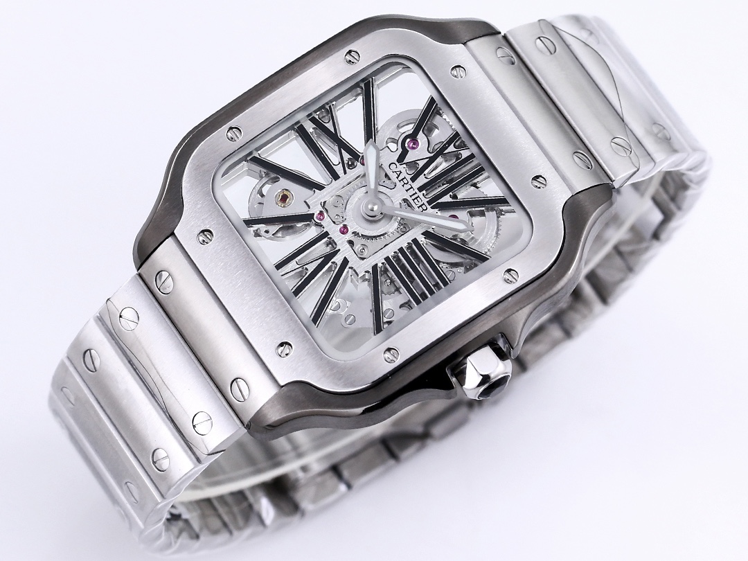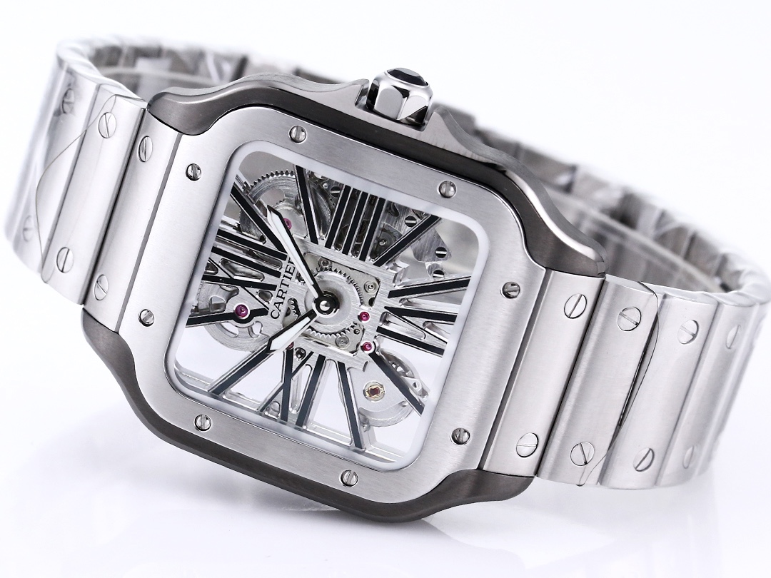 TW Premier Release: Crafting the Ultimate 1:1 Top-Tier Replica ⚠️ Cartier Santos Skeleton Series Specifications Mirror Authentic Model Case Diameter: 39.8mm Movement:Swiss Ronda 4S20 modified mechanical movement Case Thickness: 9.08mm Dial Color: Skeleton Dial Shape: Square SKU: Black Silver Silver Bezel Silver Rose Bezel Silver Gold Bezel Strap Color: Black Blue (Imported Calfskin) Clasp Type: Double-Fold Clasp Case Back: See-Through Crystal: Sapphire Crystal Hands: Blue Burnished Steel Blue Hands Black Version Luminous: Imported Green Luminous Crown: Gem-Set Crown Box