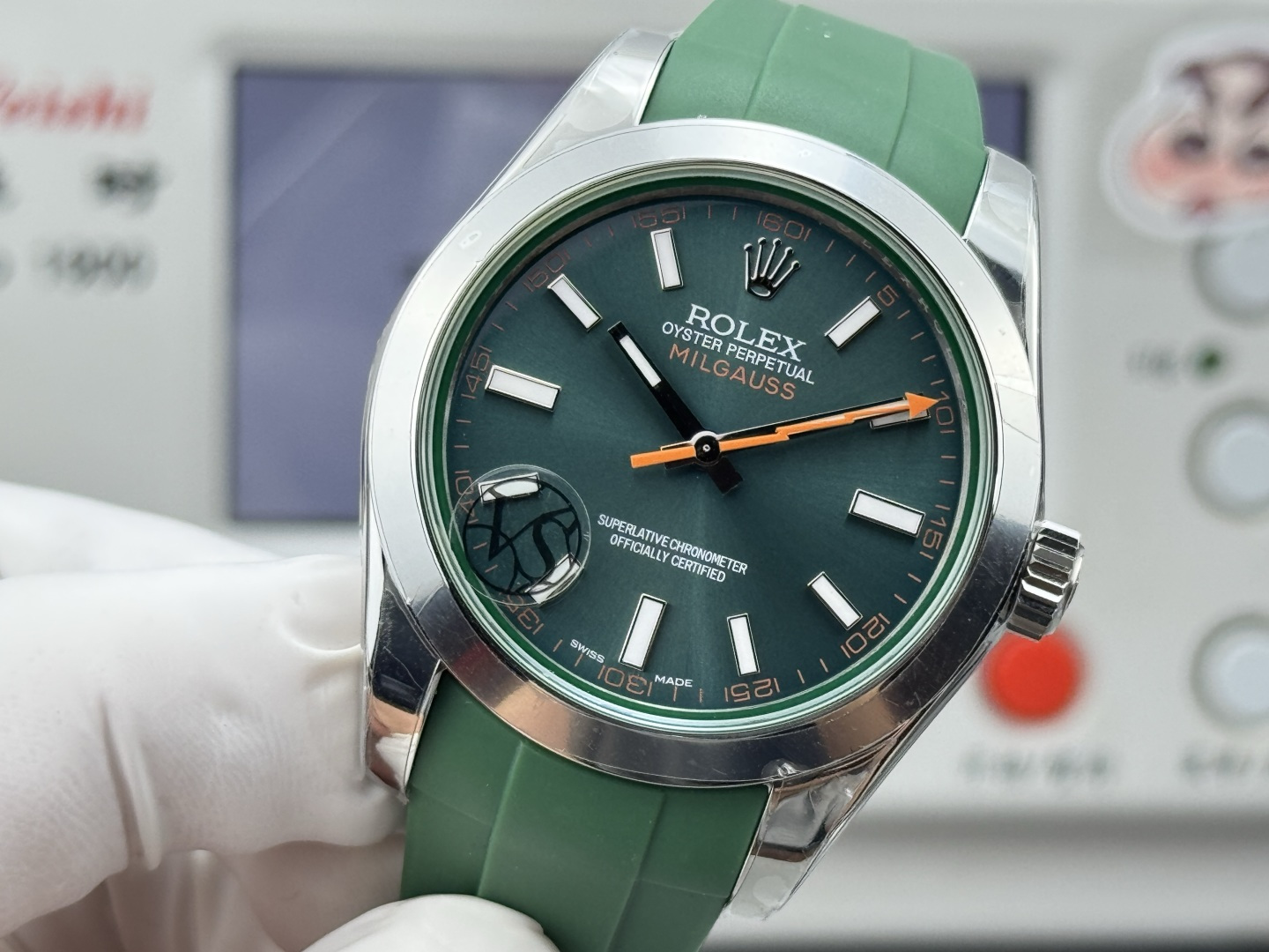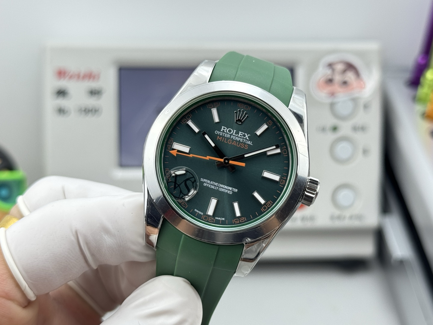 VS Factory, ROLEX Milgauss Series, 🏅️ Authentic Triple-Code Match, NFC-enabled! Quality Guaranteed!116400 Lightning Hands, Green Crystal, White Crystal 904L Highest Version, Blue Dial, Green Dial, White Dial, Black Dial, Digital Dial! Anti-Magnetic Double Case Back! ✅✅✅ Synchronized green sapphire crystal, custom solid-pivot 3131 integrated movement. Dimensions: 40mm. Oystersteel forged steel case. 📸 904L steel grade—this superalloy is widely used in high-tech, aerospace, and chemical industries, ensuring exceptional corrosion resistance.Oystersteel is exceptionally durable and polishable, maintaining its aesthetic integrity even in extreme environments. The electroluminescent blue dial, paired with green sapphire crystal and the iconic lightning-shaped seconds hand, creates a striking visual harmony.Rolex Milgauss—A Tribute to Science! Authenticity verified by watch ⌚️ code 6R9999V6 (three codes match), clasp code 1JR, includes NFC card. Genuine replica by VS Factory, shipped with actual photos. 🎁 Ultimate luxury gift recommendation💥 Authentic VS Factory quality📷