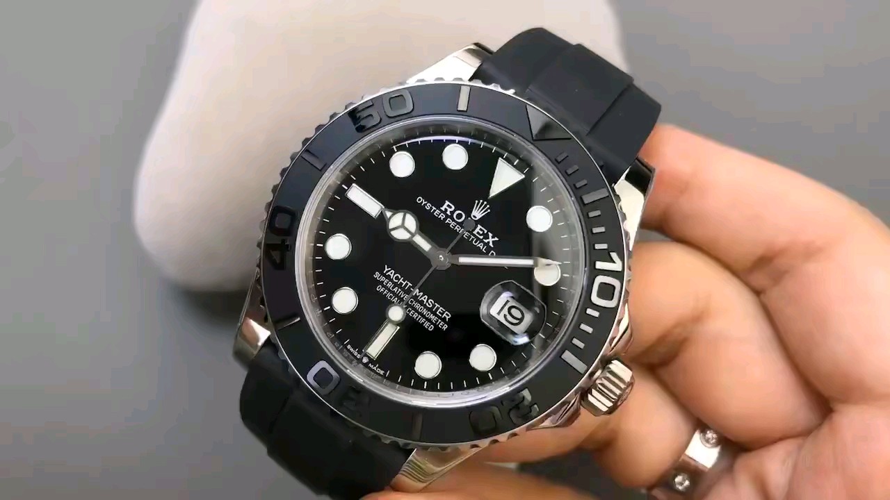 Yacht-Master 42mm New Release. Authentic molded case, bidirectional rotating bezel with genuine-calibrated tension and tactile feedback. Rubber strap with metal inserts crafted to Asian wrist dimensions using authentic techniques—durable and comfortable.